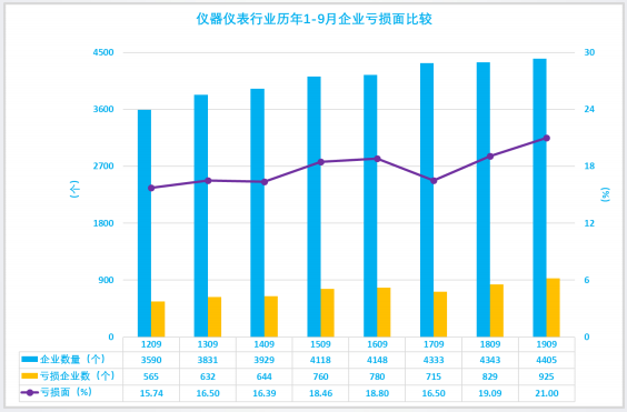 2.4 儀器儀表行業(yè)歷年1-9月企業(yè)虧損面比較