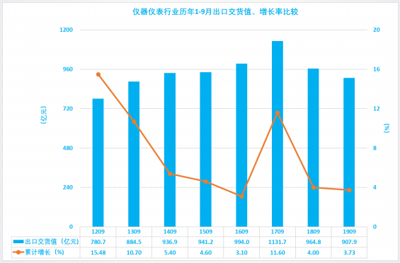2019年1-9月儀器儀表行業(yè)經(jīng)濟運行概況