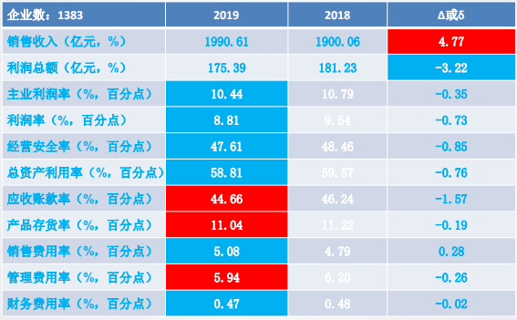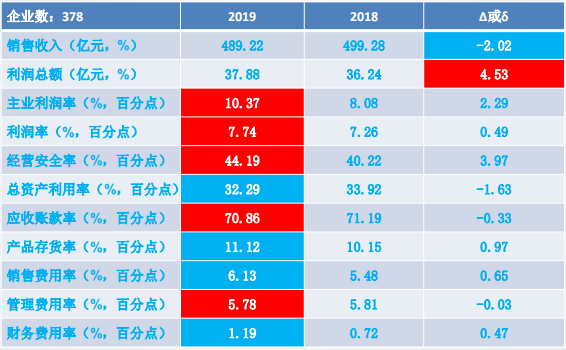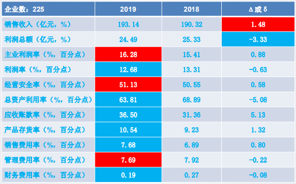 11個經(jīng)濟運行指標中:銷售收入、利潤總額、主業(yè)利潤率、經(jīng)營安全率、應(yīng)收賬款率、產(chǎn)品存貨率和管理費用率好于上年同期;其余4個指標差于上年同期。