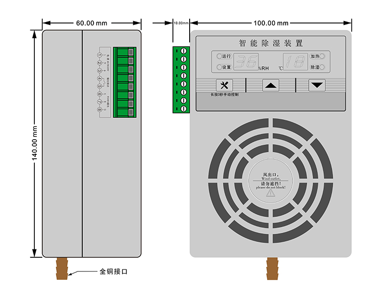 10、型號帶“T”的具有加熱功能,當檢測到箱體環(huán)境溫度低時,除濕裝置內(nèi)部的風(fēng)機和外部加熱器啟動工作。